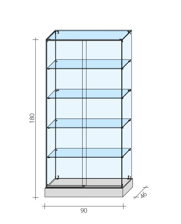 Gablota szklana AL 1 S to stylowa, stojąca witryna z przeszklonym zwieńczeniem, która subtelnie eksponuje zawartość z każdej strony. Szklana konstrukcja float z polerowanymi krawędziami zapewnia wyraźną widoczność i estetykę ekspozycji, a przesuwne drzwi na klucz gwarantują bezpieczeństwo prezentowanych przedmiotów. Dzięki minimalistycznej formie i możliwości dopasowania dekoru podstawy, gablota idealnie pasuje do aranżacji nowoczesnych, butikowych, skandynawskich i biurowych.
