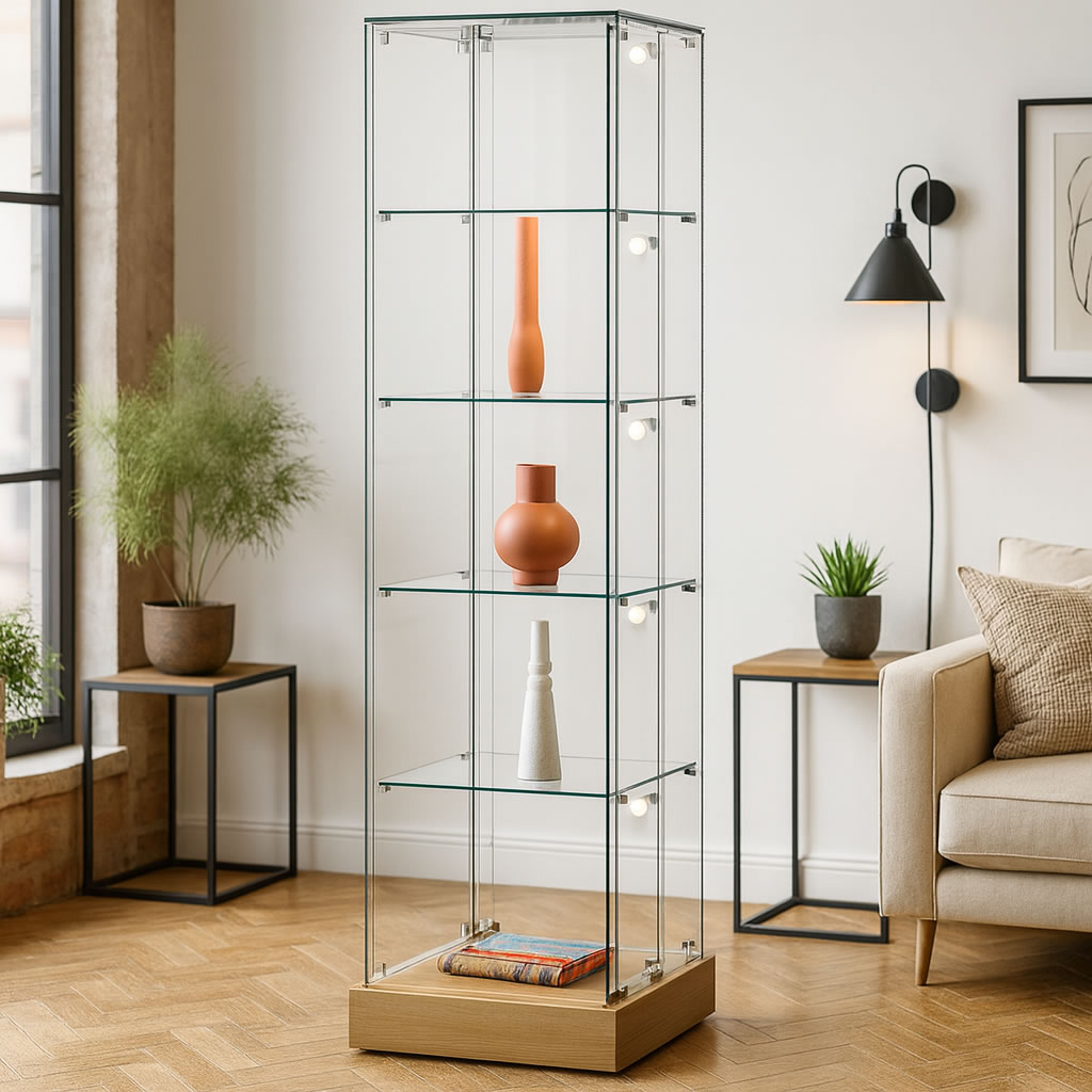 Gablota szklana AL 2 S to eleganckie i funkcjonalne rozwiązanie do eksponowania produktów w sklepach, biurach, muzeach czy wnętrzach domowych. Konstrukcja ze szkła float z polerowanymi krawędziami zapewnia przejrzystość i estetykę ekspozycji, a przesuwne, zamykane drzwi gwarantują bezpieczeństwo prezentowanych przedmiotów. Minimalistyczny design sprawia, że gablota doskonale komponuje się zarówno z nowoczesnymi, jak i klasycznymi aranżacjami wnętrz.