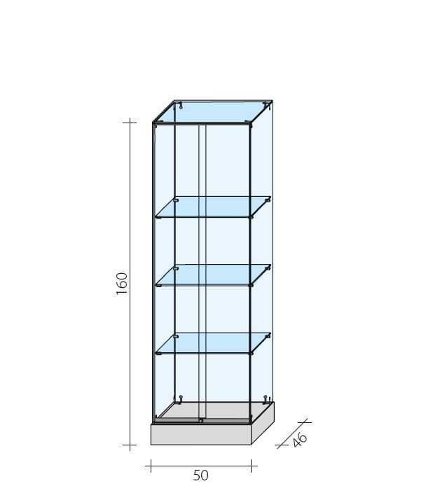 Gablota szklana AL 4 to estetyczna i solidna witryna z transparentną konstrukcją, zapewniająca wyraźną i bezpieczną prezentację eksponatów dzięki przesuwanym drzwiom z zamkiem. Przeszklony front z polerowanymi krawędziami oraz możliwość montażu oświetlenia LED podkreślają każdy detal wystawy, akcentując jej atrakcyjność. Styl minimalistyczny oraz szeroki wybór dekorów podstawy sprawiają, że gablota idealnie komponuje się z wnętrzami nowoczesnymi, butikowymi, katalogowymi, muzealnymi oraz biurowymi.