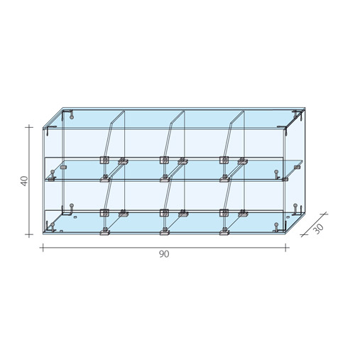 Gablota na cukierki i ciastkaGablota szklana na cukierki AL15Wymiary gabloty szklanej nadstawkiGabloty sklepowe szklaneŁączenia szkła złączką metalowąPrzegrody gabloty szklanej na cukierkiSzczegóły budowy witryn sklepowych GABLOGablotka sklepowa na cukierki i ciastka