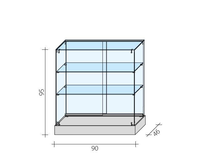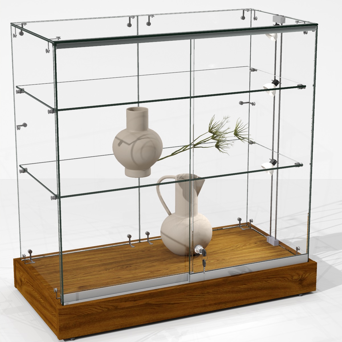 Lada szklana AL 7-D to stylowe rozwiązanie ekspozycyjne, które dzięki transparentnej konstrukcji ze szkła float z polerowanymi krawędziami zapewnia wyraźny i estetyczny podgląd zawartości. Przesuwne drzwi z zamkiem patentowym zwiększają bezpieczeństwo ekspozycji, a opcjonalne oświetlenie LED subtelnie podkreśla prezentowane przedmioty. Minimalistyczny design doskonale wpisuje się w aranżacje nowoczesne, butikowe, muzealne oraz przestrzenie sklepowe i biurowe, dodając im elegancji i funkcjonalności.