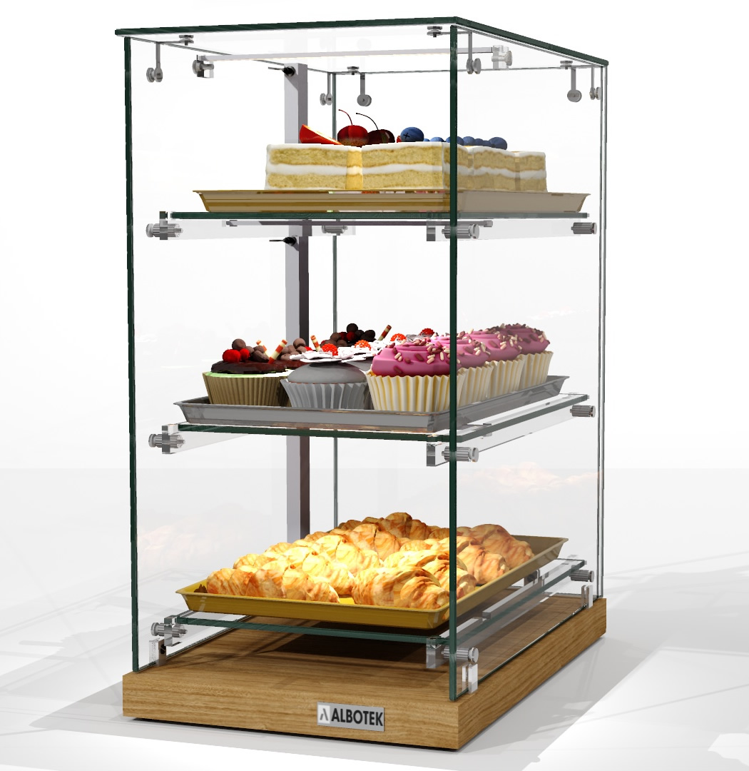do ekspozycji wypieków, idealna do ekspozycji ciast, deserów i kanapek. Witryna cukiernicza nablatowa wykonana jest z wysokiej jakości szkła, co czyni ją estetyczną i trwałą gablotą szklaną. Dzięki kompaktowym wymiarom świetnie sprawdza się jako witryna na ciasta nablatowa w cukierniach, piekarniach, hotelach i kawiarniach.