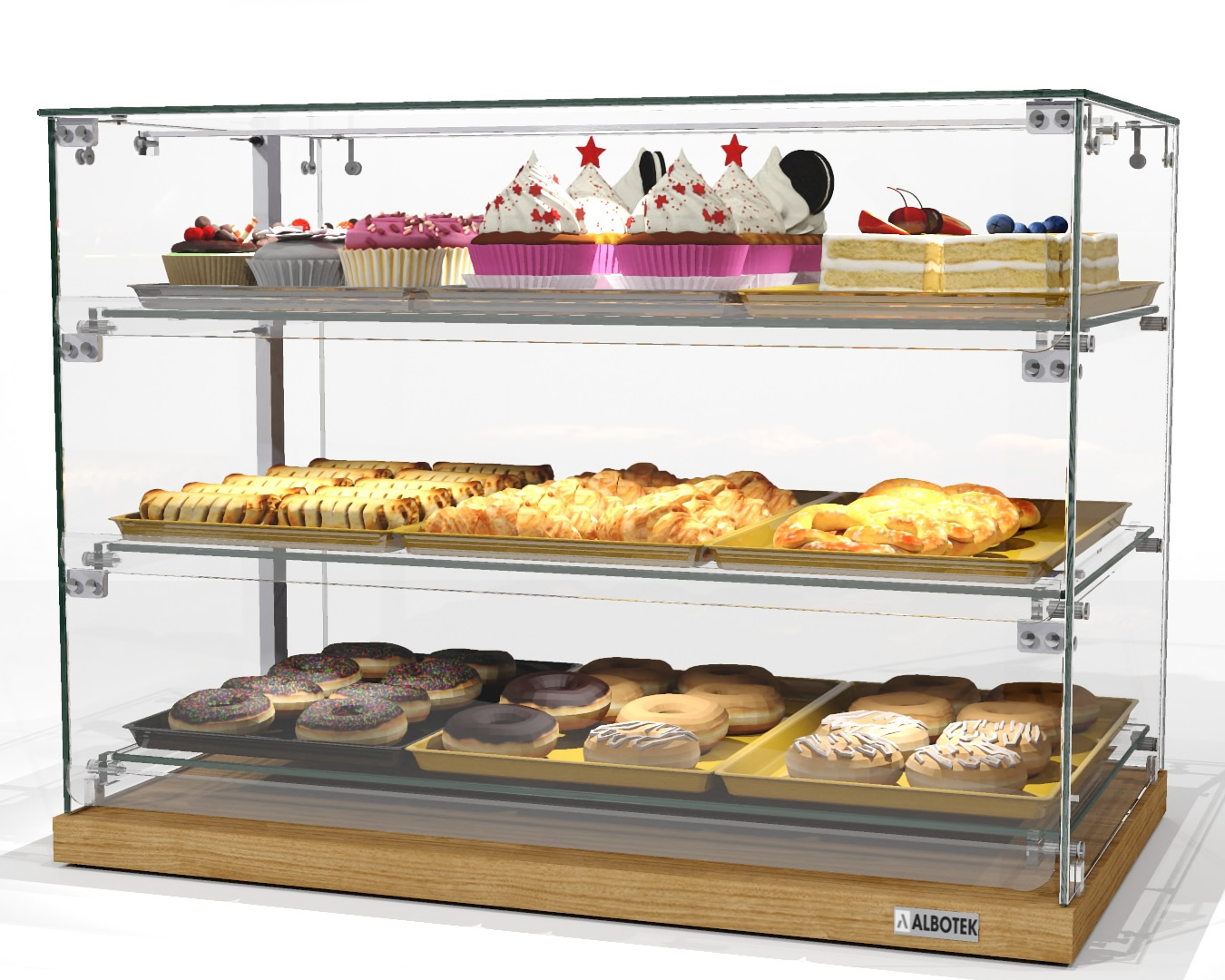 Model SN 3 K to idealna witryna nablatowa do bufetu lub punktów samoobsługowych – łączy w sobie wygodę użytkowania i ochronę eksponowanych wyrobów. Trzy poziomy ekspozycji pozwalają na przejrzyste i atrakcyjne ułożenie wypieków i przekąsek.