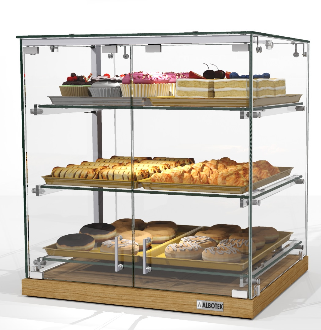 witryna na ciasta nablatowa, witryna cukiernicza z drzwiami, witryna szklana na desery i przekąski